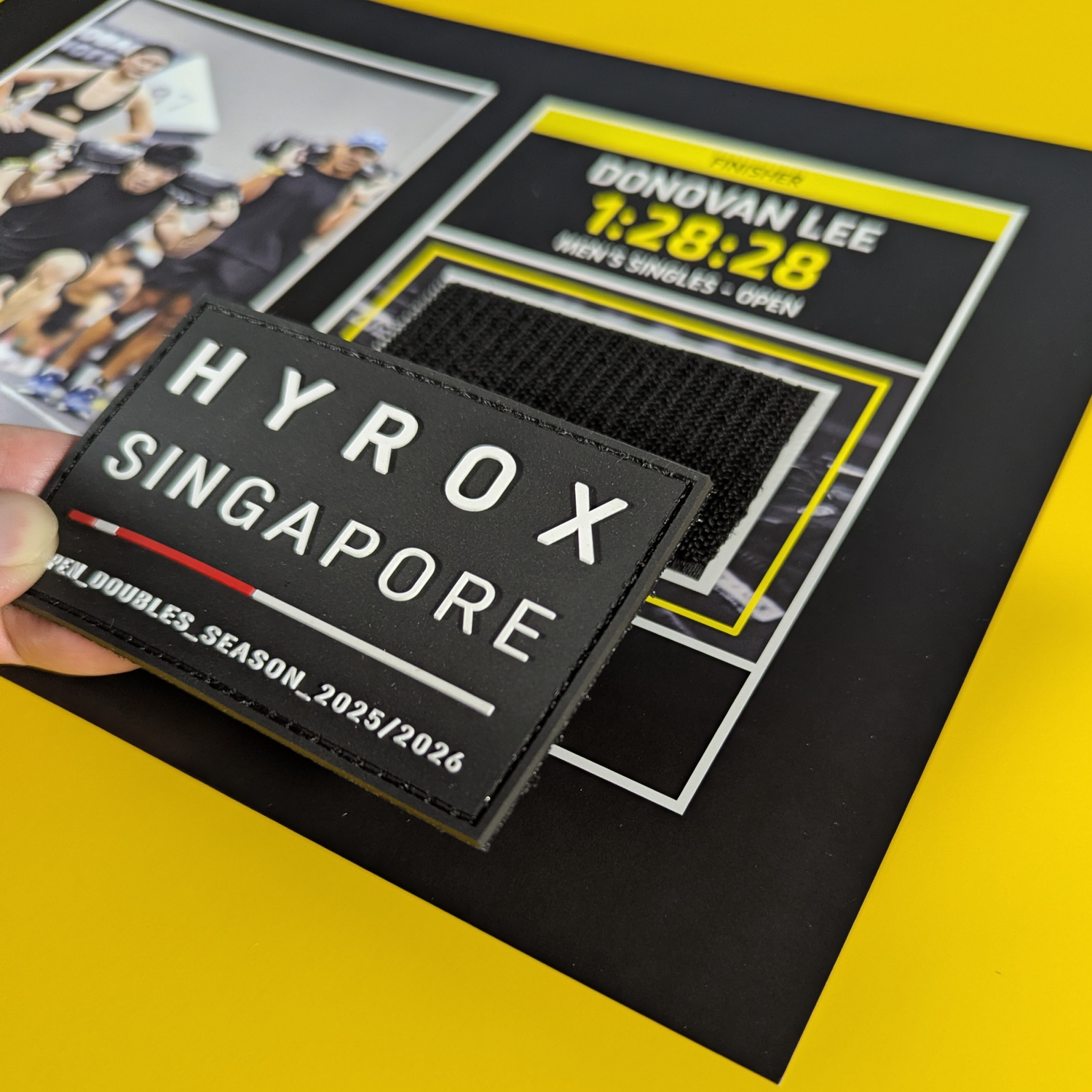The distinctive Finisher Frame patch mount provides a unique space for your HYROX patch and the perfect way to put your finish on display.